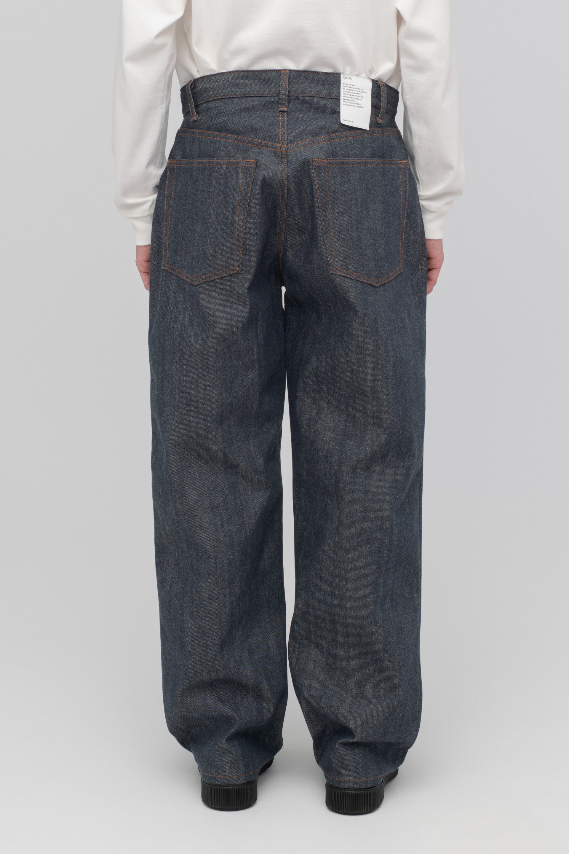 This new model uses reactive dyeing, which is said to be resistant to friction and water damage and does not fade easily even after washing. It has been treated to prevent shrinkage and twisting, so you can enjoy the rich color of denim for a long time without worrying about changes in size or silhouette. The fabric is a 12.5oz selvedge denim woven from Svin cotton. Compared to CIOTA's "raw fabric" model (13.5oz), it offers a lighter, more comfortable feel. The lineup includes five styles: straight, tapered, wide tapered, baggy, and high-rise.