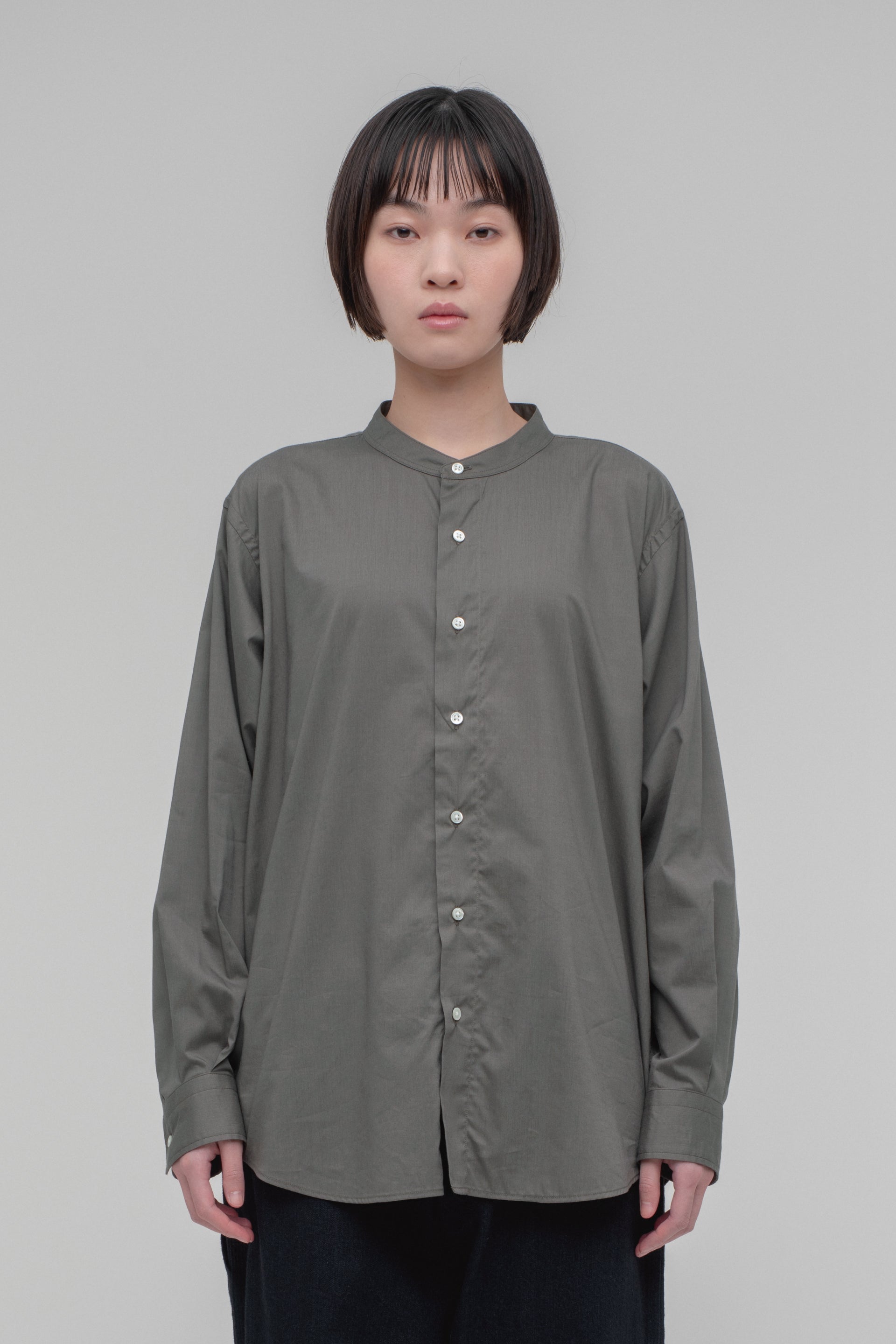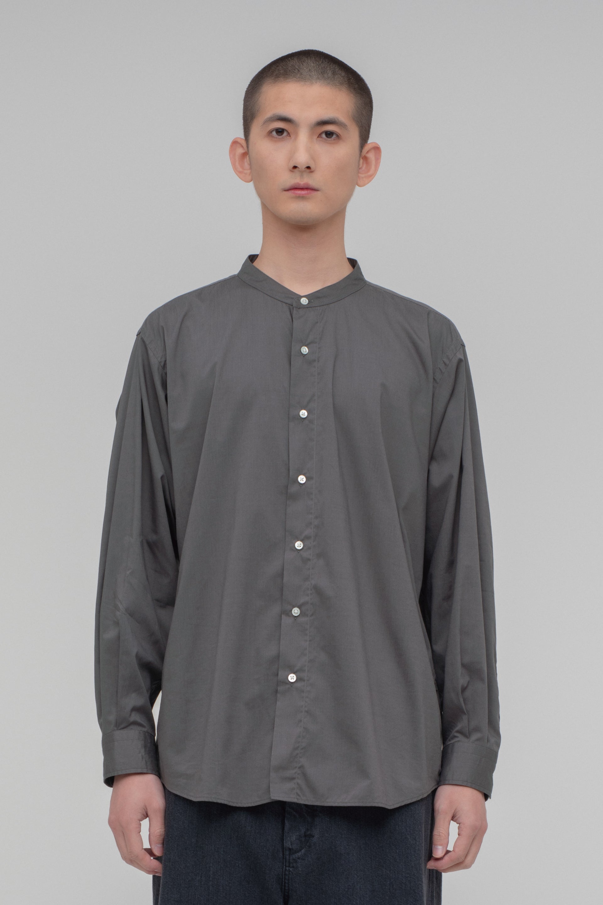 - Band Collar Long Sleeve Shirt (Cotton Rayon)