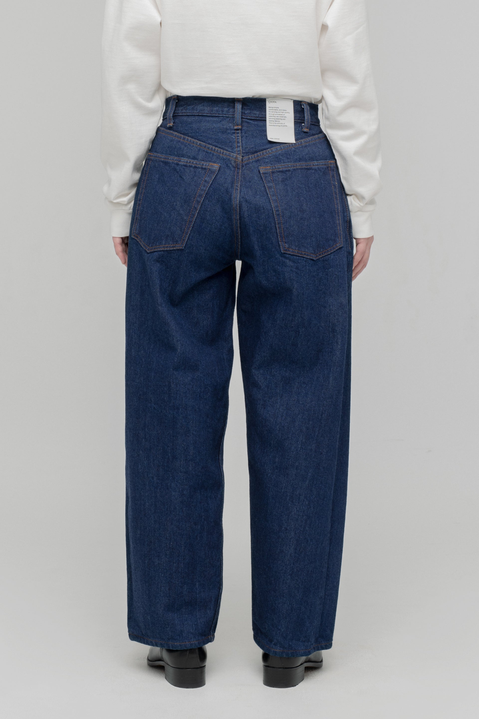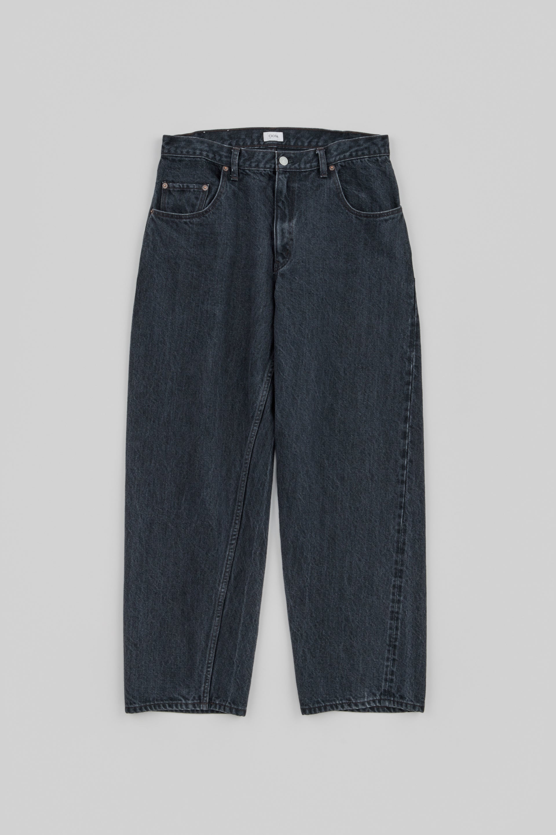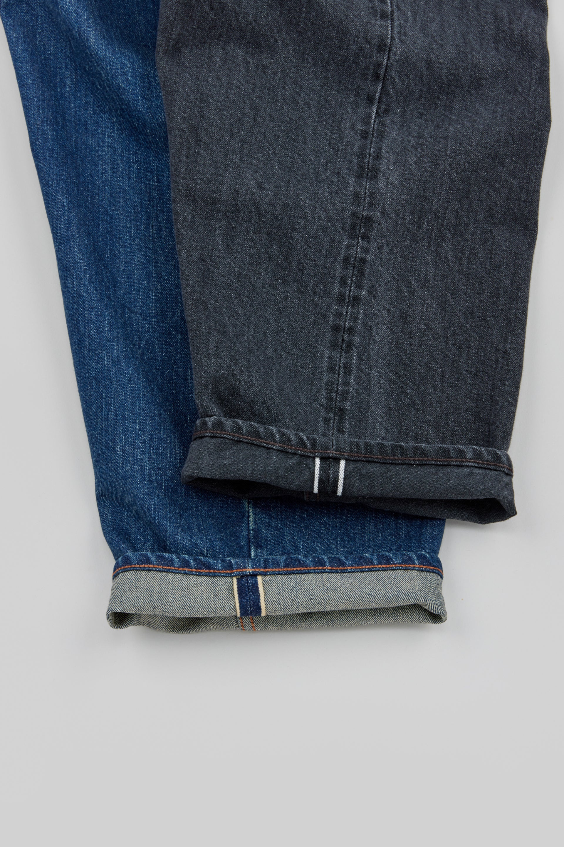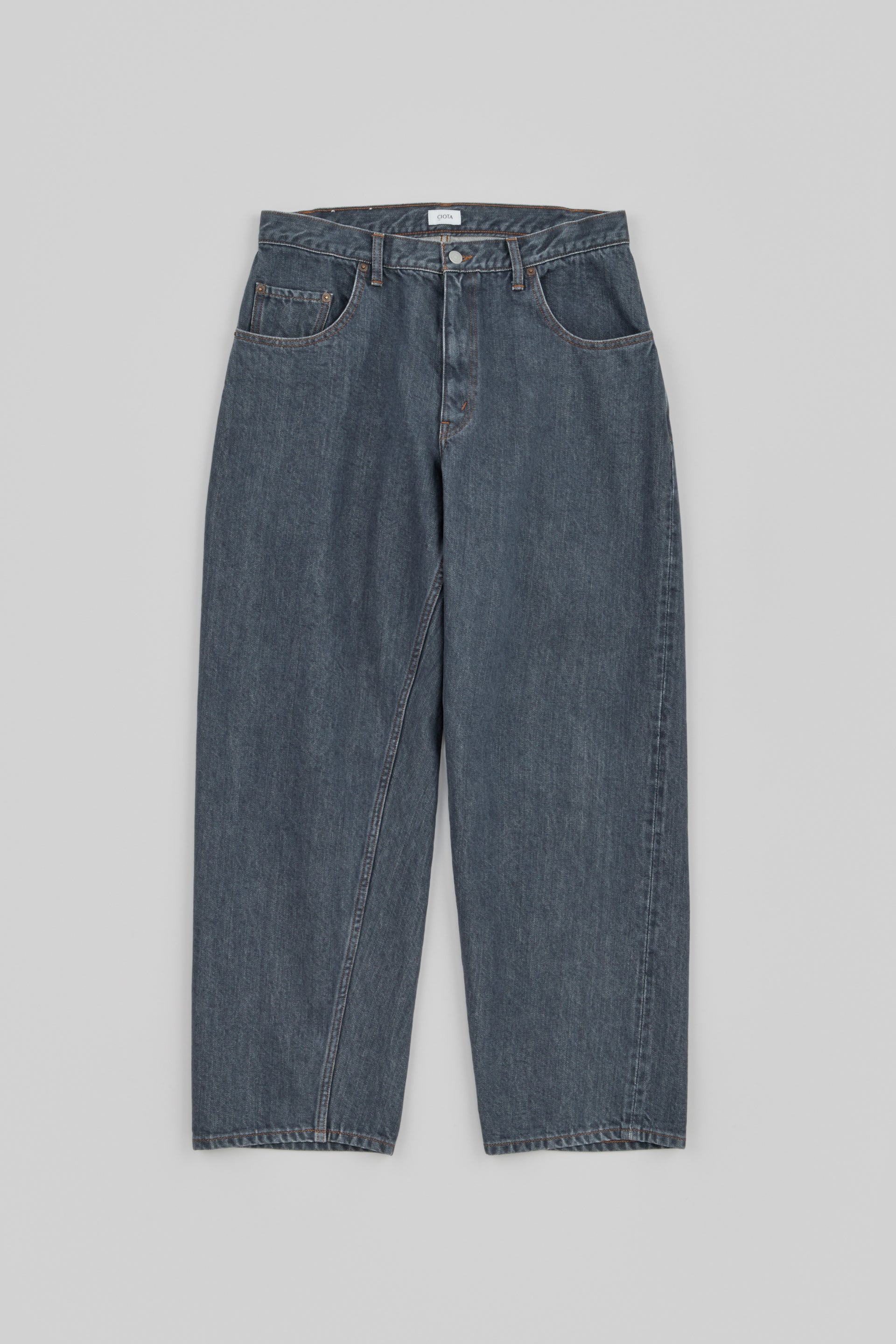 The baggy model sampling the loose-fit jeans of the 1990s has been fully renewed. The silhouette is the same from the loose-fitting crotch to the hems, with a deeper inseam and longer inseam than the old model. The fabric has been changed to a "raw machine" without glue removal, shrink-proofing, anti-straightening or hair burning. The blue denim warp is made of an uneven yarn using synthetic indigo, while the black and grey denim warps are made of a medium white yarn rope-dyed with sulphide dyes. Both weft yarns are made from extra-long delicate cotton, Suvin cotton, and the selvedge denim is finished on an old-style power loom (shuttle loom). These baggies have a new feel that combines a firm texture with supple comfort.