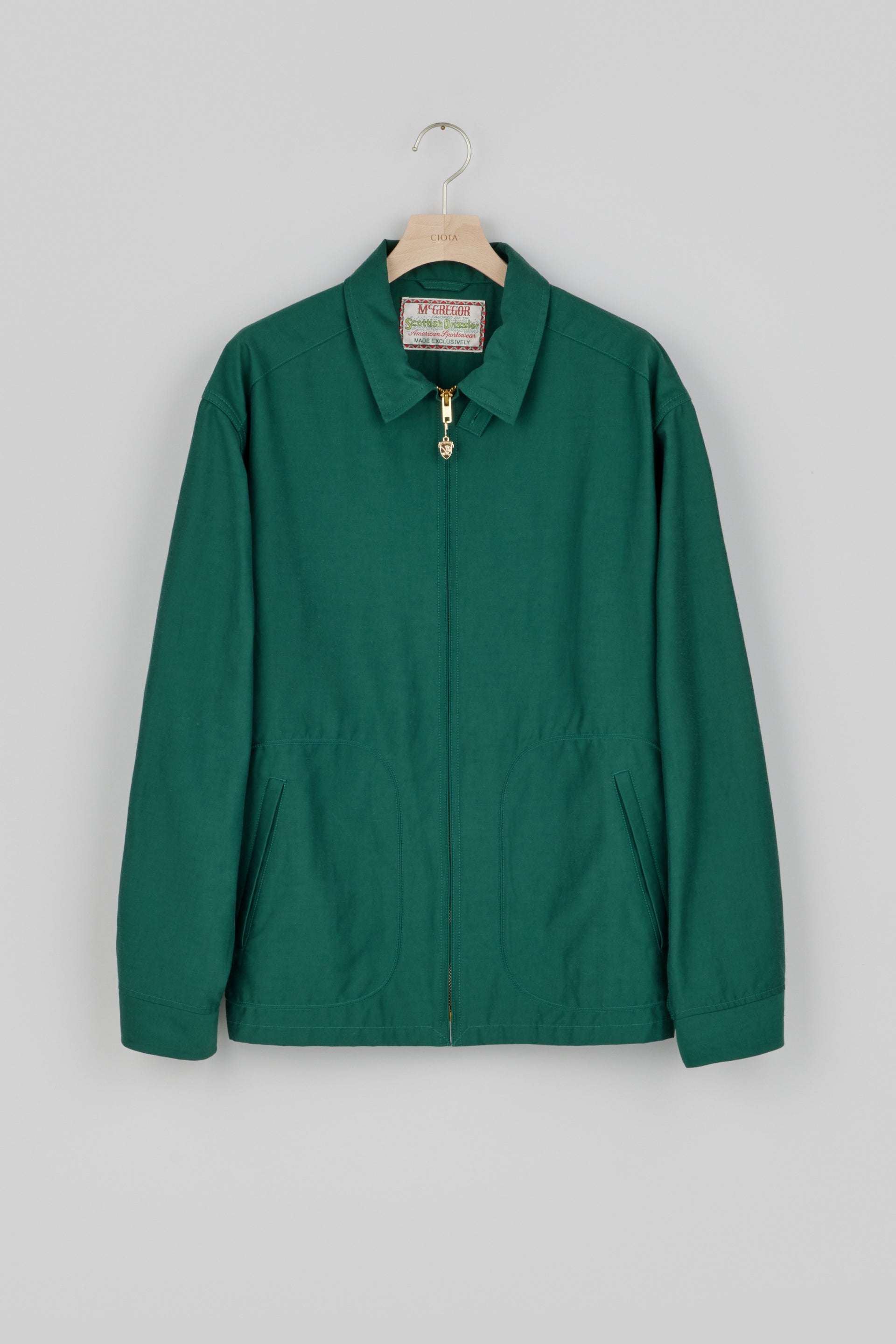 McGREGOR のアイコン、ドリズラージャケットをCIOTAがフルディレクション。デザインや仕様は、1970年代のモデルがサンプル。襟を立てて留めるチンストラップや逆玉縁ポケットなど、雨風の浸入を防ぐためのディテールはもちろんそのまま採用されています。生地はタテ糸にレーヨン、ヨコ糸にスビンコットンを掛け合わせたオリジナル。表面にスビンコットンが多く出る織り方になっているため、風合いはナチュラル。ゴルファーの小雨対策として開発されたスポーツジャケットですが、その佇まいは上品です。
