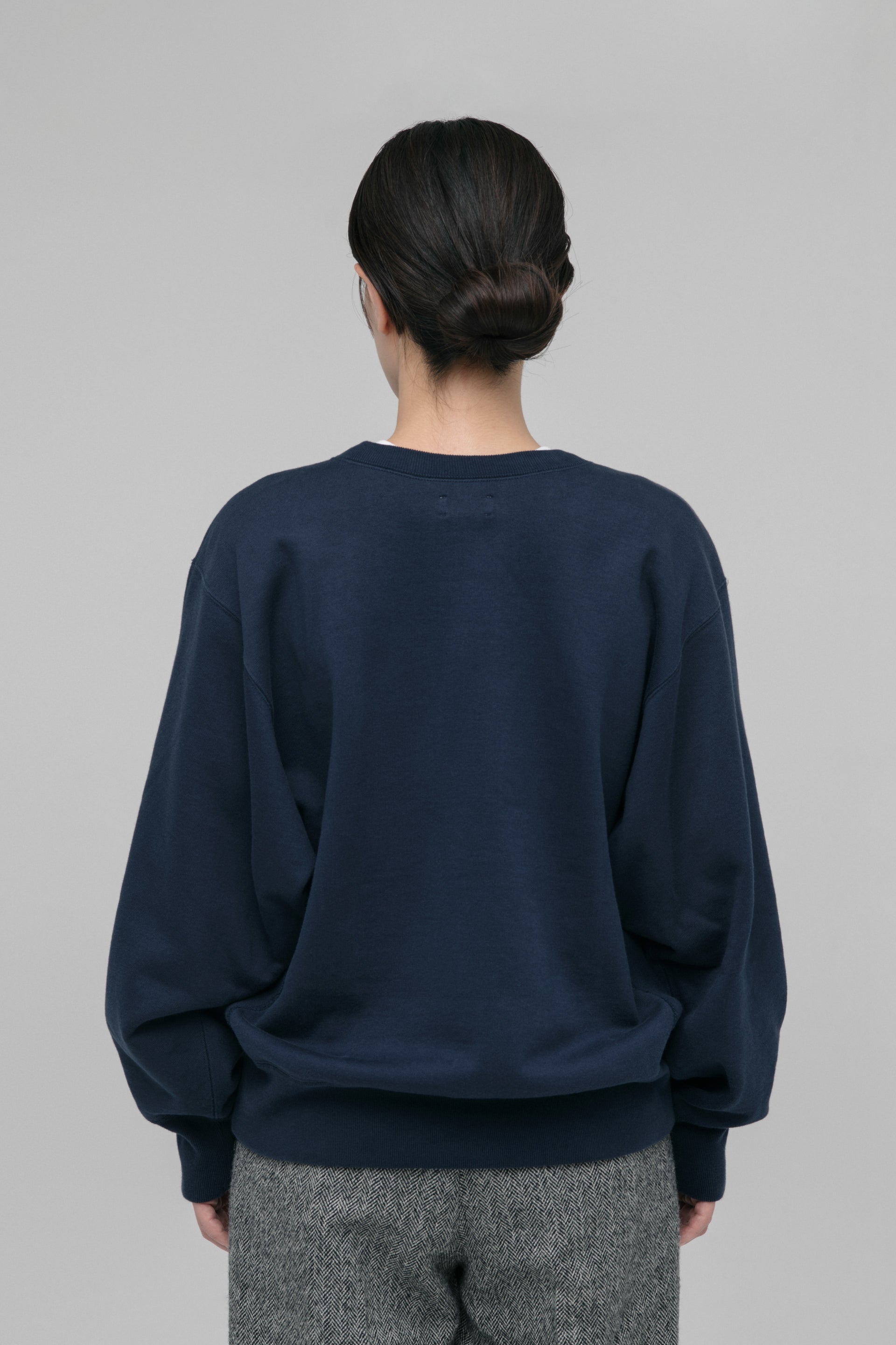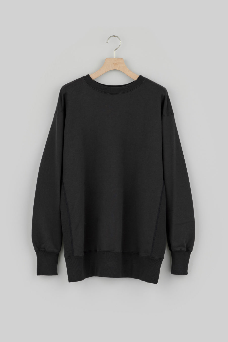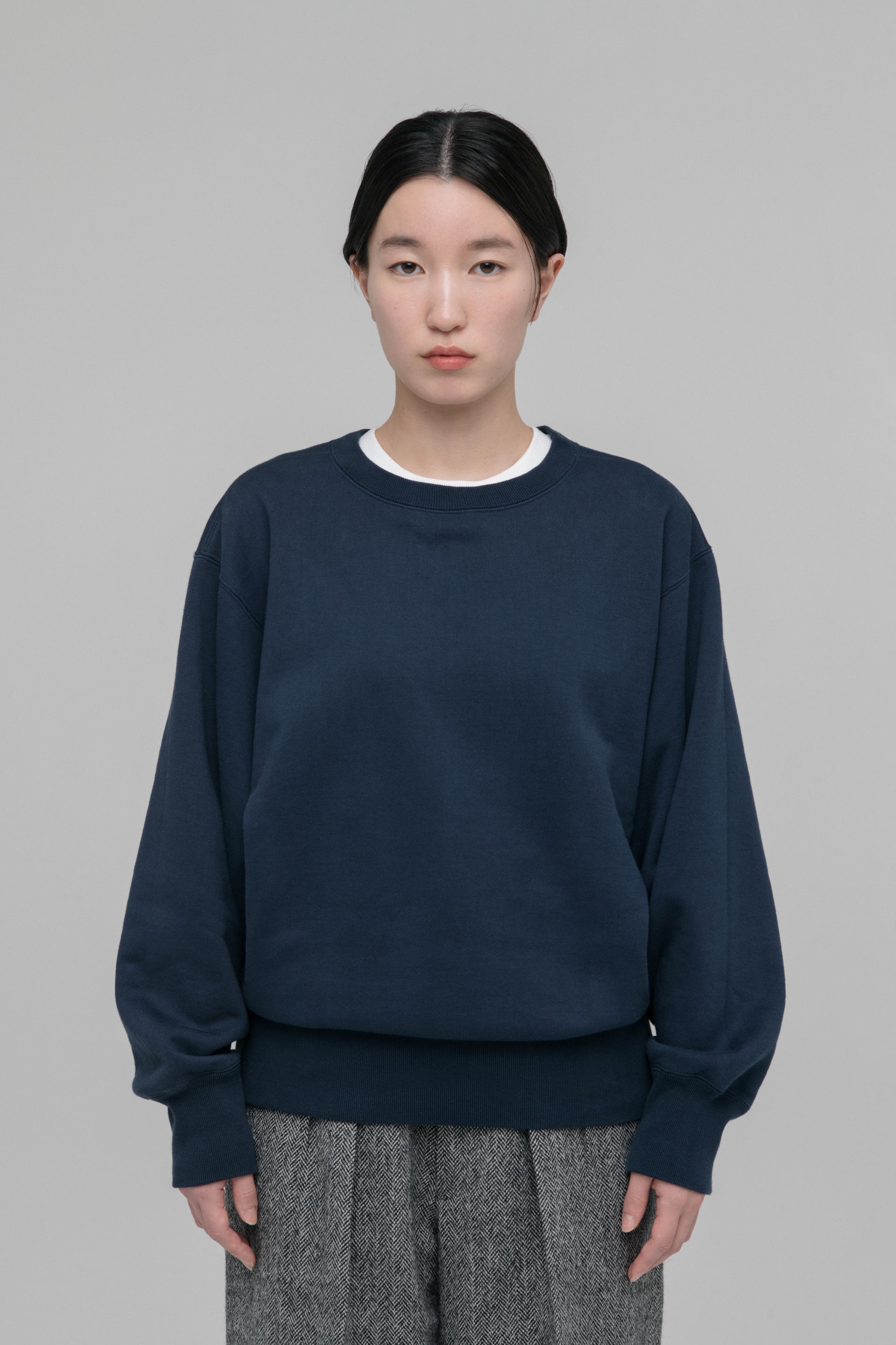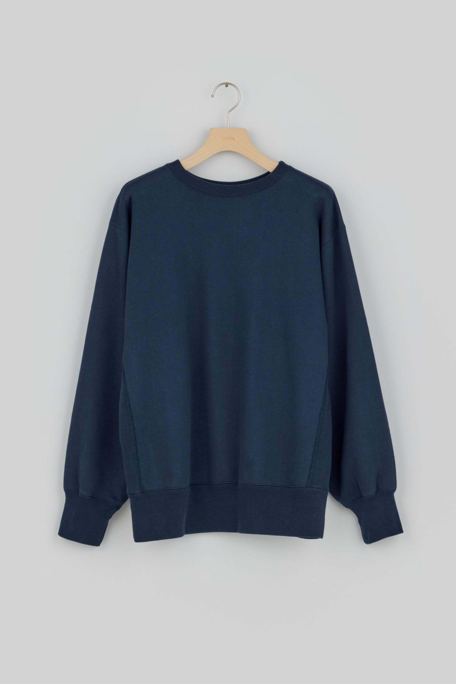 CIOTAの裏起毛スウェットシャツは柔らかい。洗っても、数年経っても柔らかい。スウェットシャツの素材、裏毛は上糸、中糸、下糸の3層を繋ぎ合わせて出来ています。CIOTAのスウェットシャツはそのすべてが超長繊細綿・スビンコットンという贅沢仕様、もちろんリブまで。また、それを吊機でゆっくりと編み上げる。まるで手編みのような温もり、しっとりとした独特の風合いはこうして実現しています。デザインのモチーフは1990年代のメイドインUSAの古着。そっけないほどシンプルですが、肌触りは饒舌です。