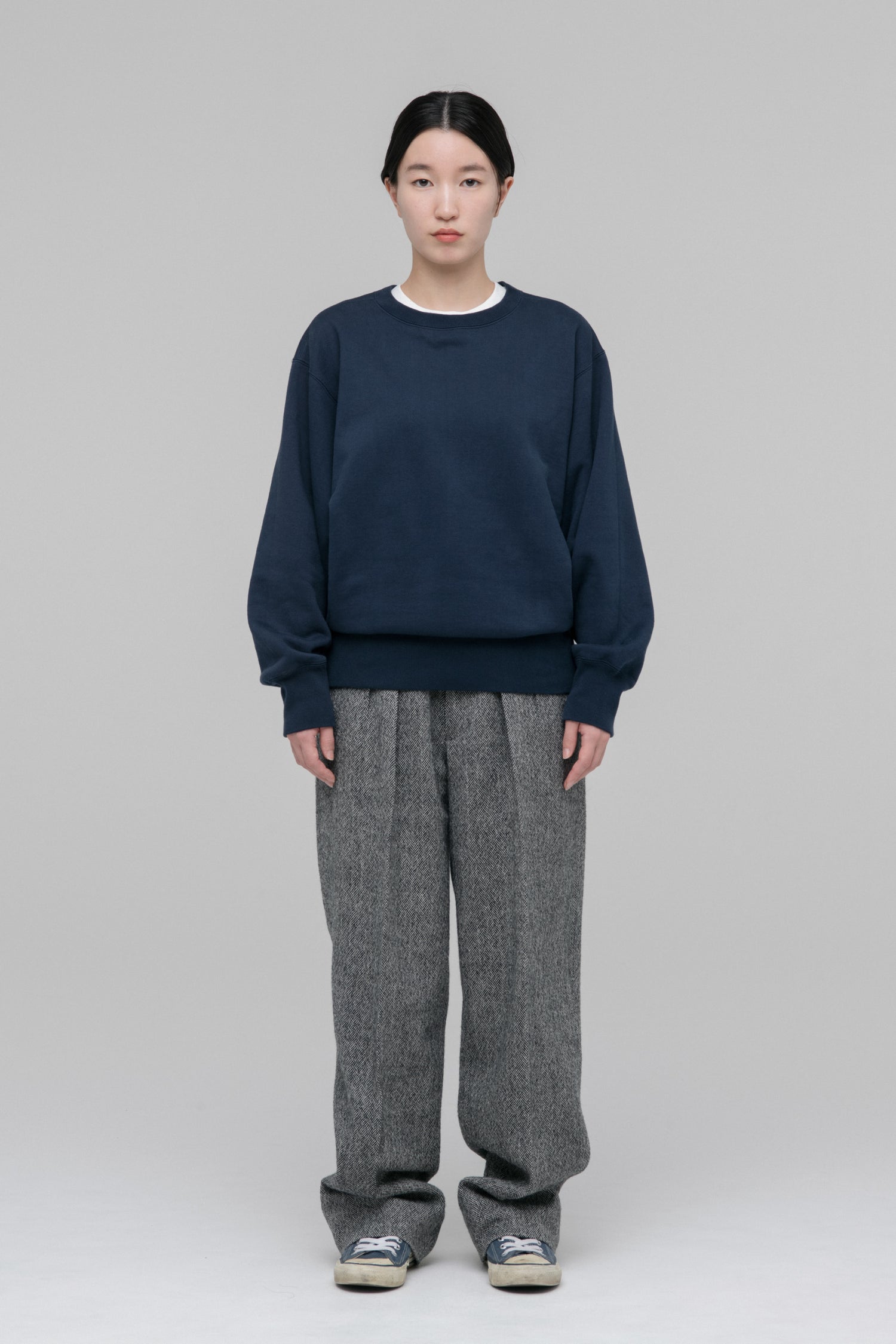 CIOTAの裏起毛スウェットシャツは柔らかい。洗っても、数年経っても柔らかい。スウェットシャツの素材、裏毛は上糸、中糸、下糸の3層を繋ぎ合わせて出来ています。CIOTAのスウェットシャツはそのすべてが超長繊細綿・スビンコットンという贅沢仕様、もちろんリブまで。また、それを吊機でゆっくりと編み上げる。まるで手編みのような温もり、しっとりとした独特の風合いはこうして実現しています。デザインのモチーフは1990年代のメイドインUSAの古着。そっけないほどシンプルですが、肌触りは饒舌です。