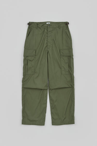 古着市場で年々希少性が高まるUSアーミーのジャングルファティーグパンツ3rdタイプをモチーフにしています。ストレートシルエットですが、裾のドローコードを絞ればテーパリングも可能。気分に合わせてスタイルを変化できます。生地はスビンコットンのウェザー(平織り)・クロス。しっかりとした芯を残しながら、スビンコットンならではのしなやかさも感じられる仕上がり。ヴィンテージの仕様、ルックスをほぼ忠実に再現していますが、履き心地は上質にアップデートしています。