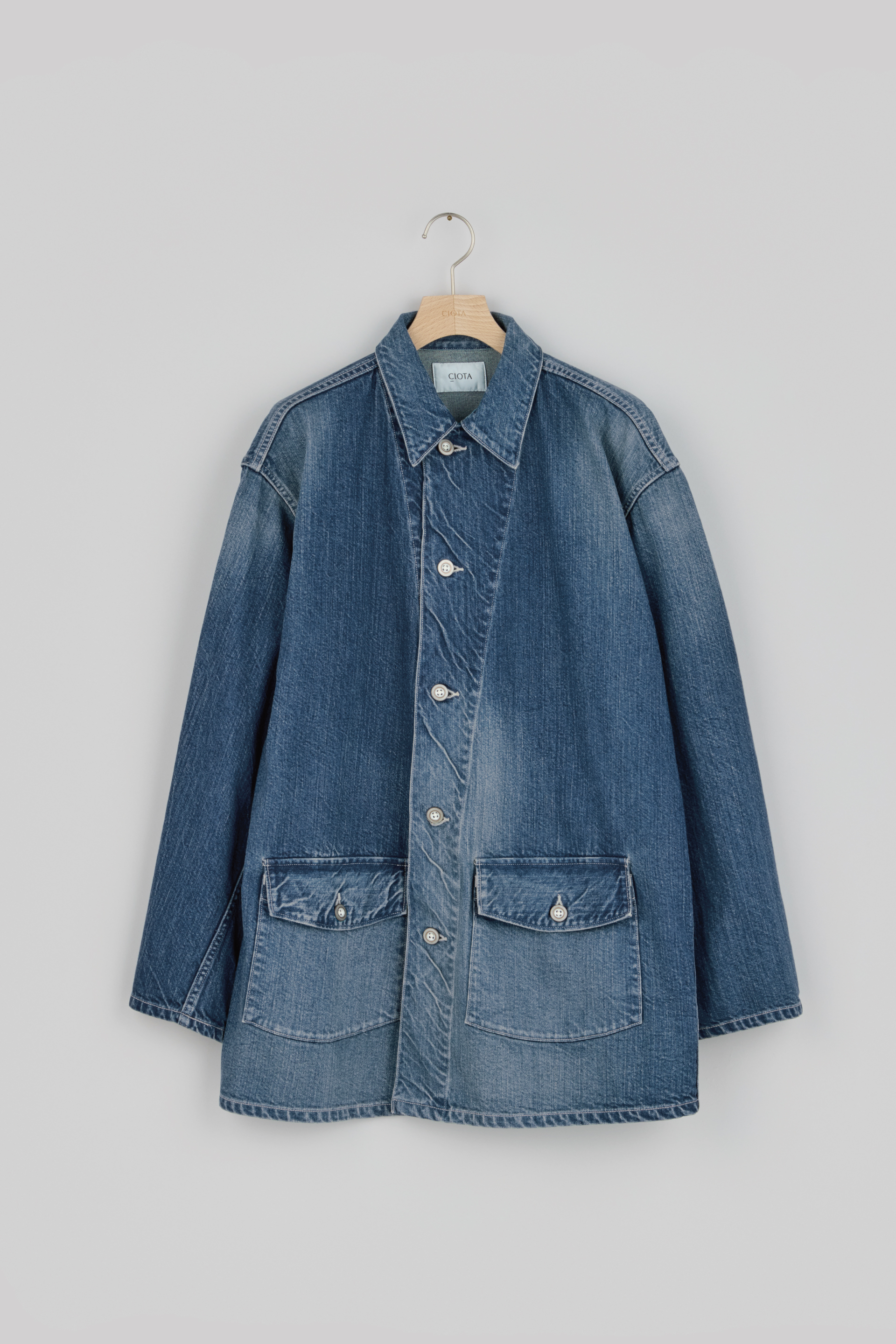 生地はCIOTAオリジナルのスビンコットン11.5ozの合成インディゴの生機(きばた)デニムを使用。防縮加工や、毛焼きといった整理加工をあえて施さず、また、それを熟練した縫製技術で仕上げることで、デニム本来の表情を存分に引出しました。
