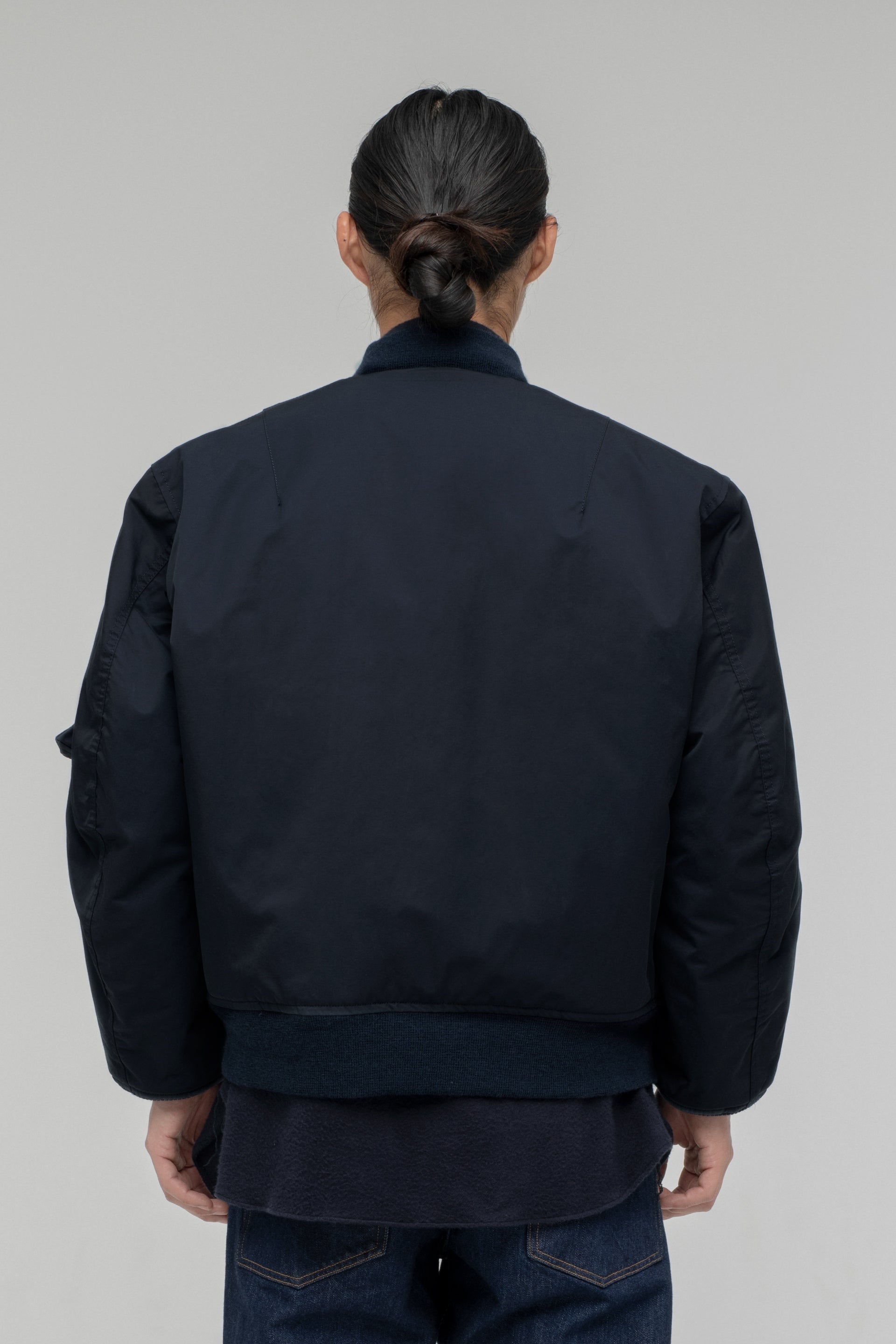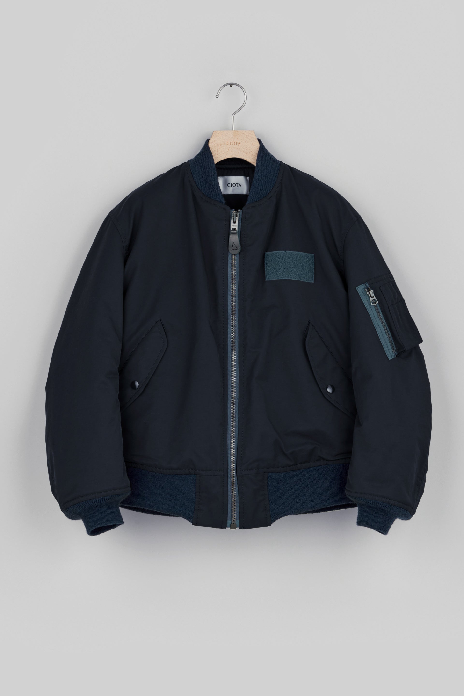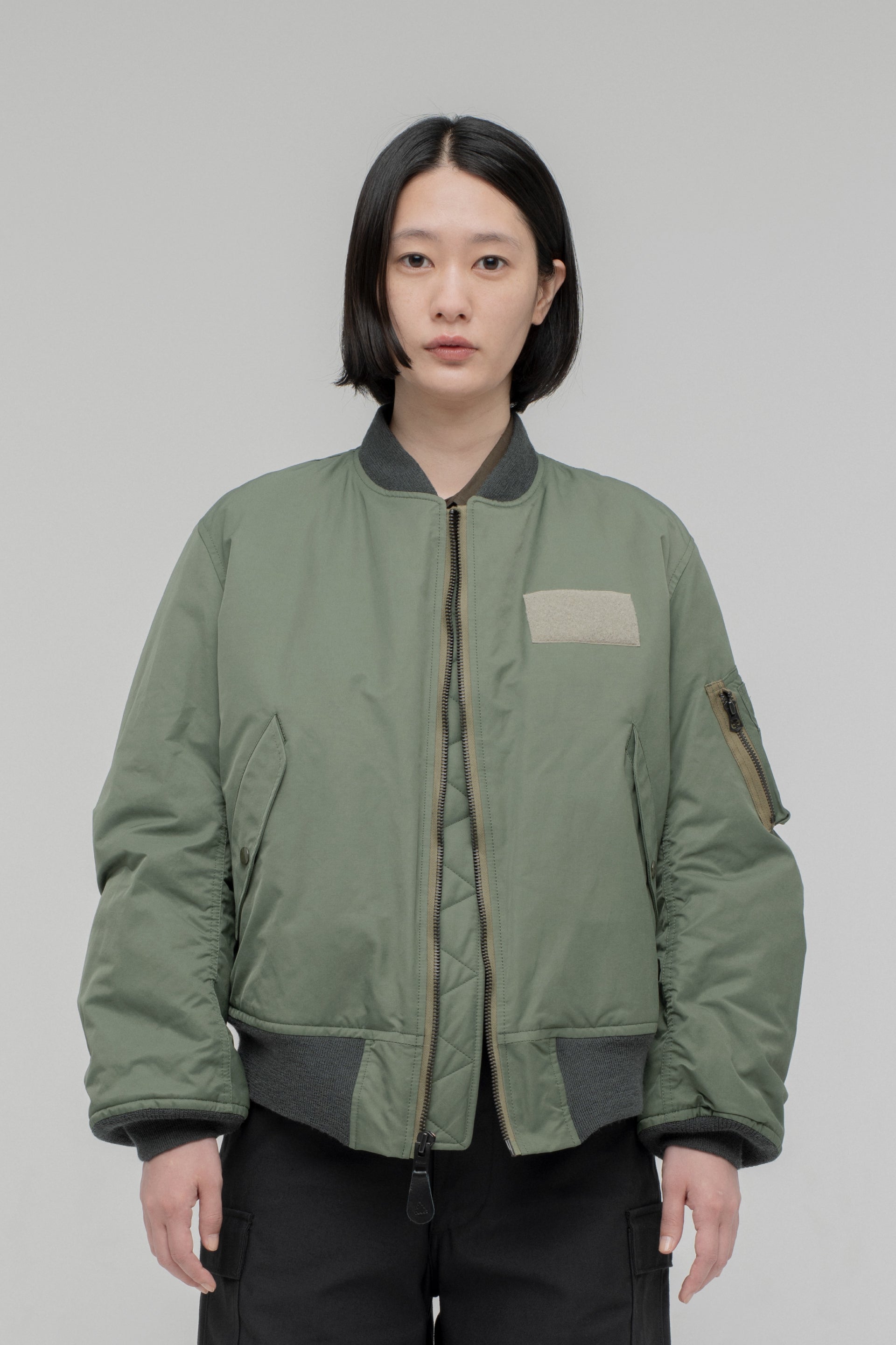 もともとワイドフィットだった袖と身幅をさらにゆったりさせ、着丈も長くしたMA-1のリニューアルモデル。ナイロンにスビンコットンを掛け合わせたツイル生地を使用していて、表面はマットに見えますが、手触りはツルツル、サラサラしています。ディテールデザインは1980年代にアメリカ軍がグランドクルーに支給していたタイプをがモチーフ。スコービル社製の無骨なファスナーもポイントです。中綿には熱伝導性が低いTORAYの超繊細繊維を採用。いったん取り込んだ熱を逃しにくく、同じ層で比べればダウンの2倍の暖かさを誇ります。新色ネイビーが加わり全3色展開。