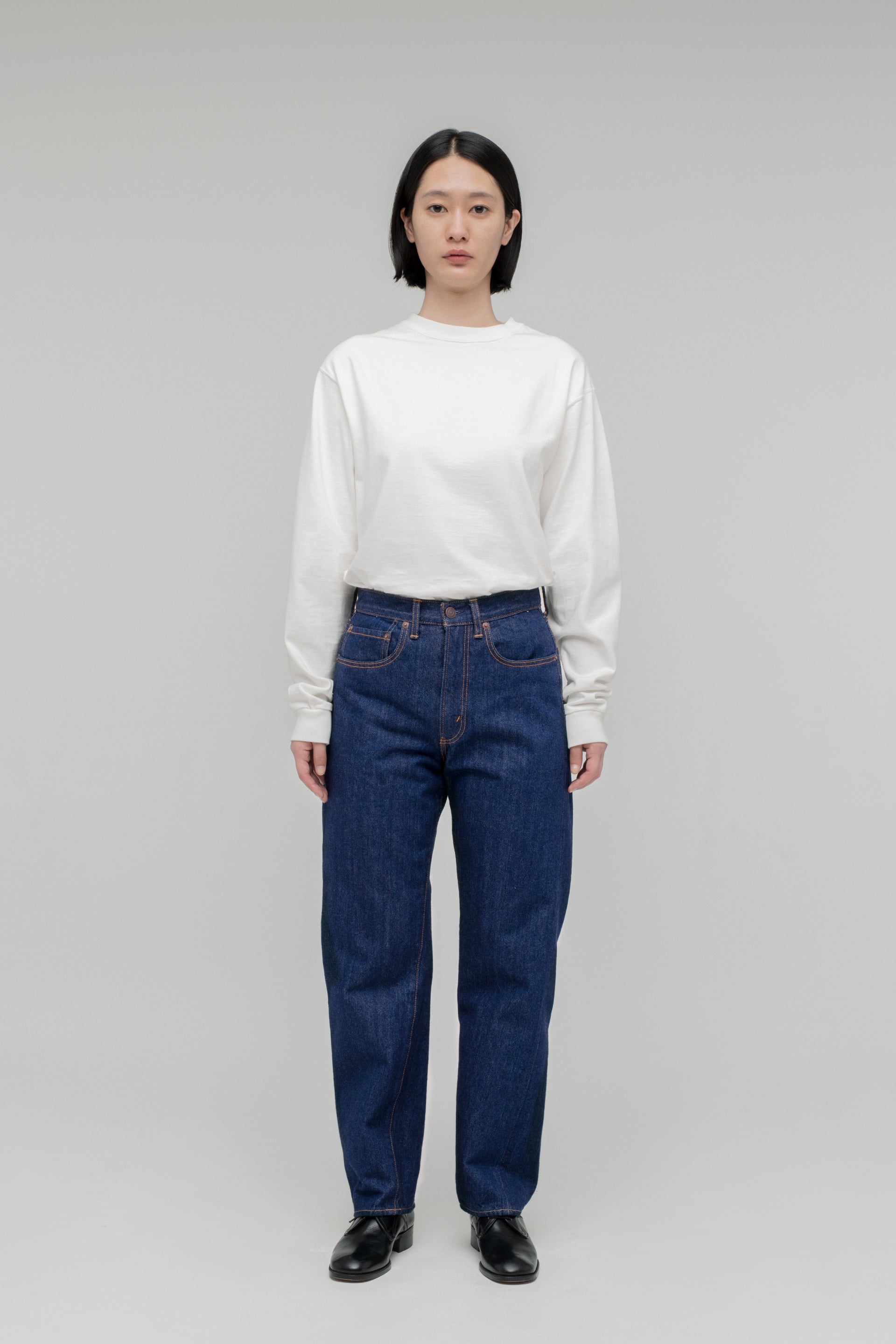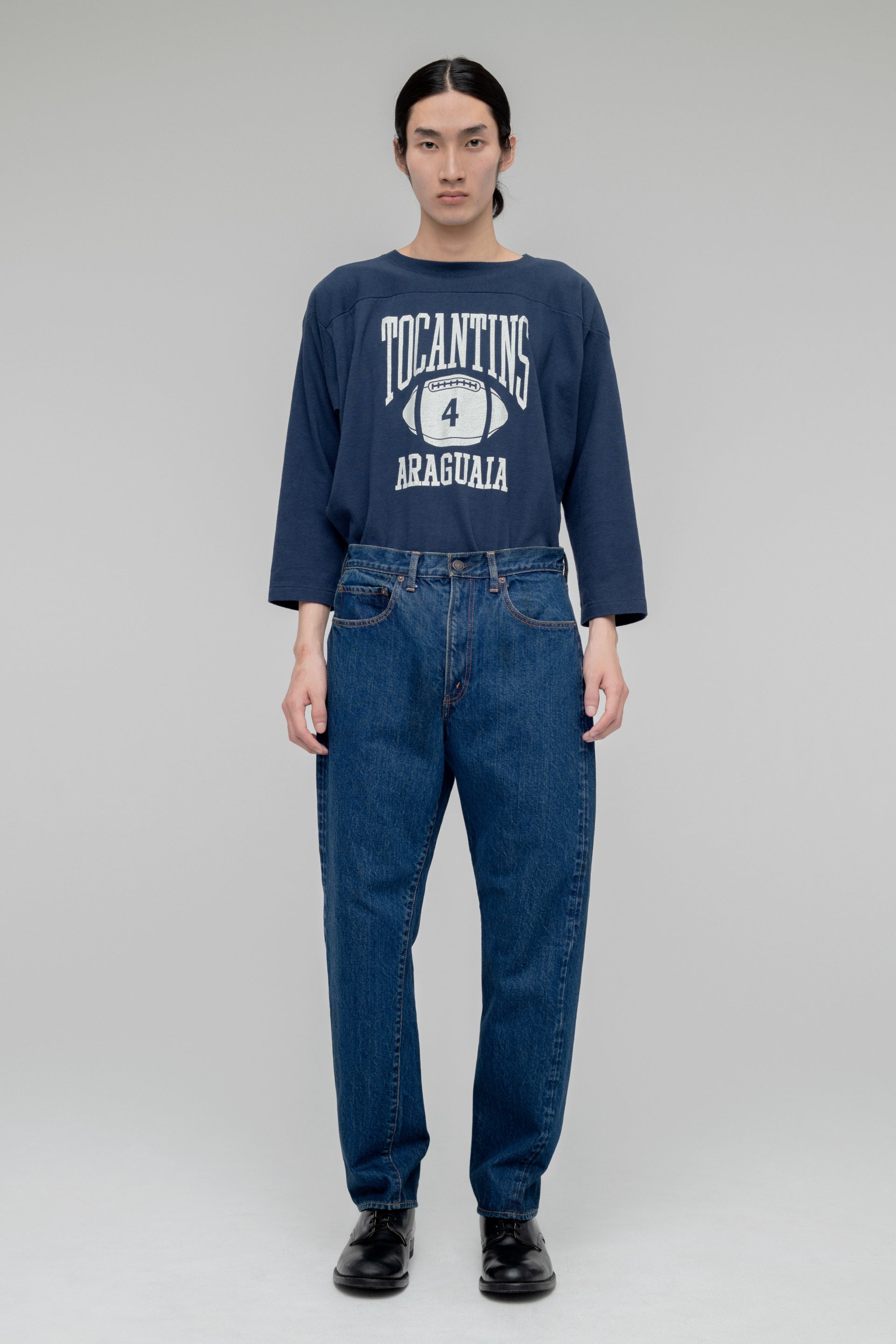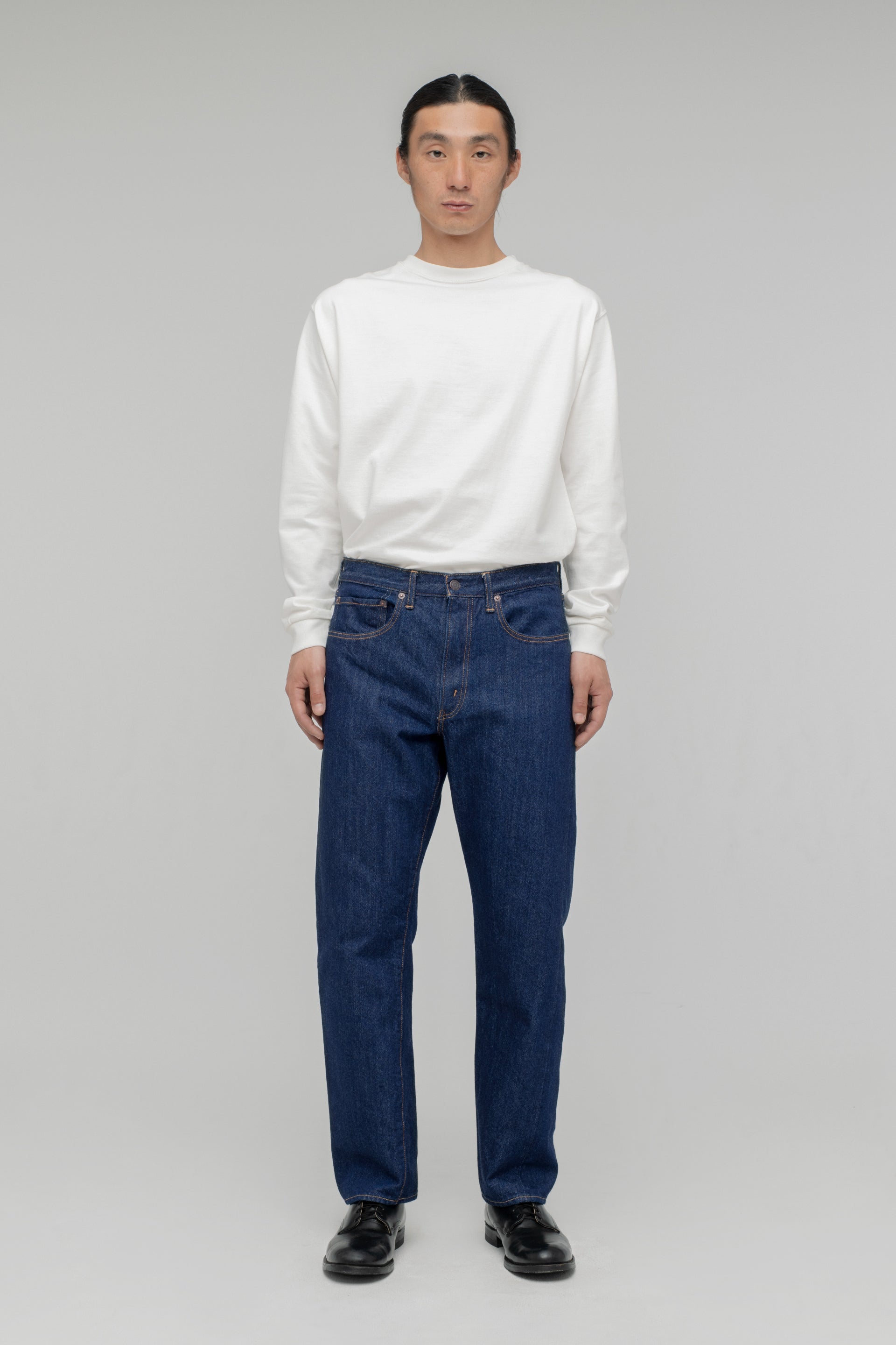 24SSよりリニューアルしたテーパードモデルは、膝から裾にかけて緩やかに細くなるシルエットで、従来よりやや太めに変更。1970年代のヴィンテージジーンズをサンプリングし、ファスナーは42TALON、ポケット裏はシングルステッチ、バックポケットはやや細長いデザインで、穿くほどに魅力が増すヴィンテージディテールを丁寧に再現しています。ストレートデニムよりも個性のあるクラシックな印象で、幅広い着こなしにフィットするシルエット。
