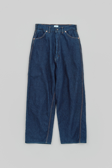 右バックサイドのスケールポケット付き、トリプルステッチが特徴のペインターパンツ。股上が深いワイドなシルエットですが、テーパードが効いているため少し大きめを選んで腰履きがおすすめです。