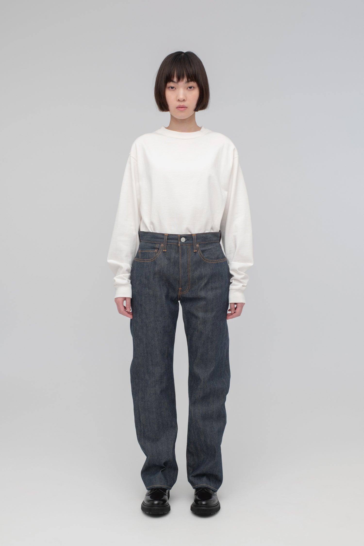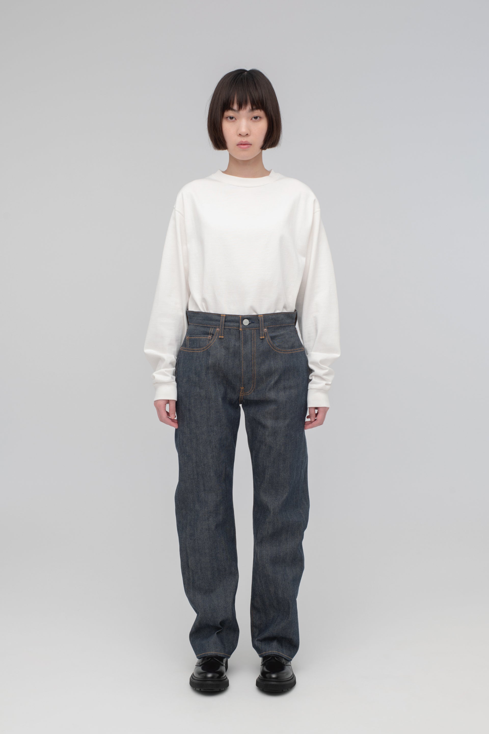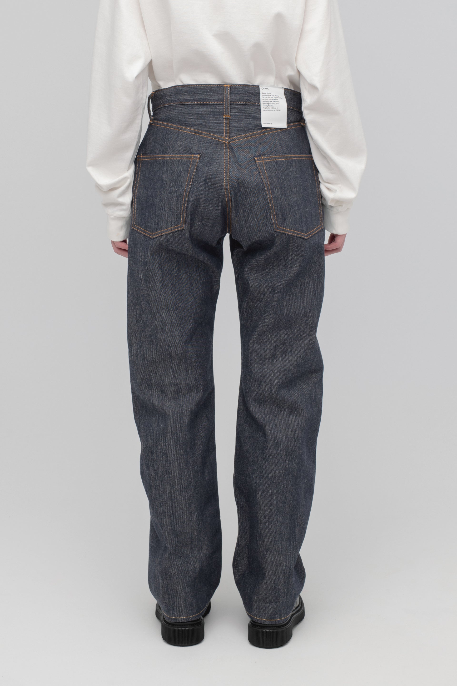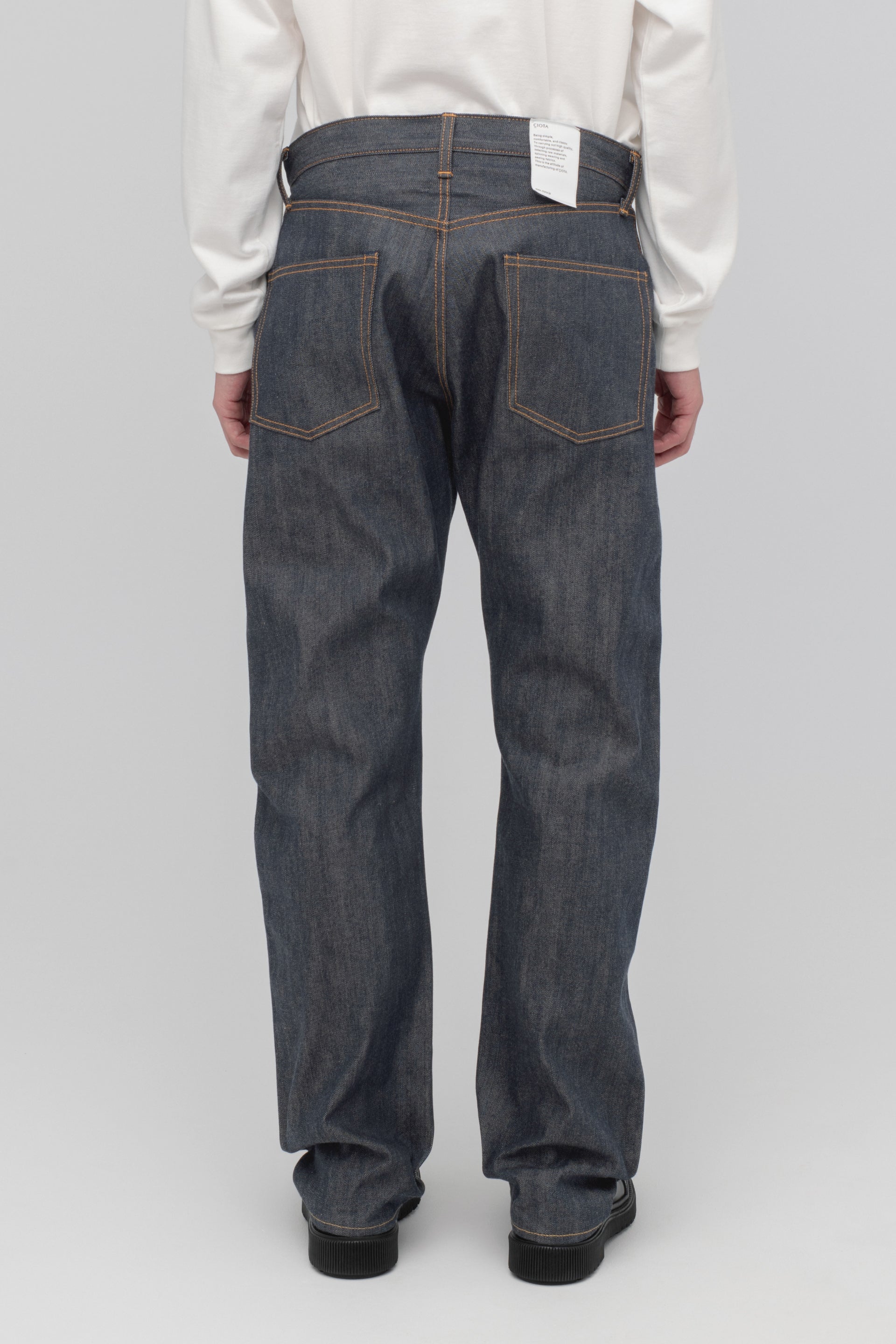 摩擦や水濡れに強く、洗っても色落ちしにくいと言われている、反応染めを採用した新モデル。縮みや捻れを防ぐ加工を施しており、一般的なリジットデニムよりも縮みが出にくいため、サイズやシルエットの変化を気にせず、デニムらしい濃色をクリーンに長く楽しめます。生地はスビンコットンを織り上げた12.5ozのセルビッチデニム。CIOTAの“生機”モデル(13.5oz)よりも、軽やかな履き心地が特徴です。ストレート、テーパード、ワイドテーパード、バギー、ハイライズの5型をラインナップ。