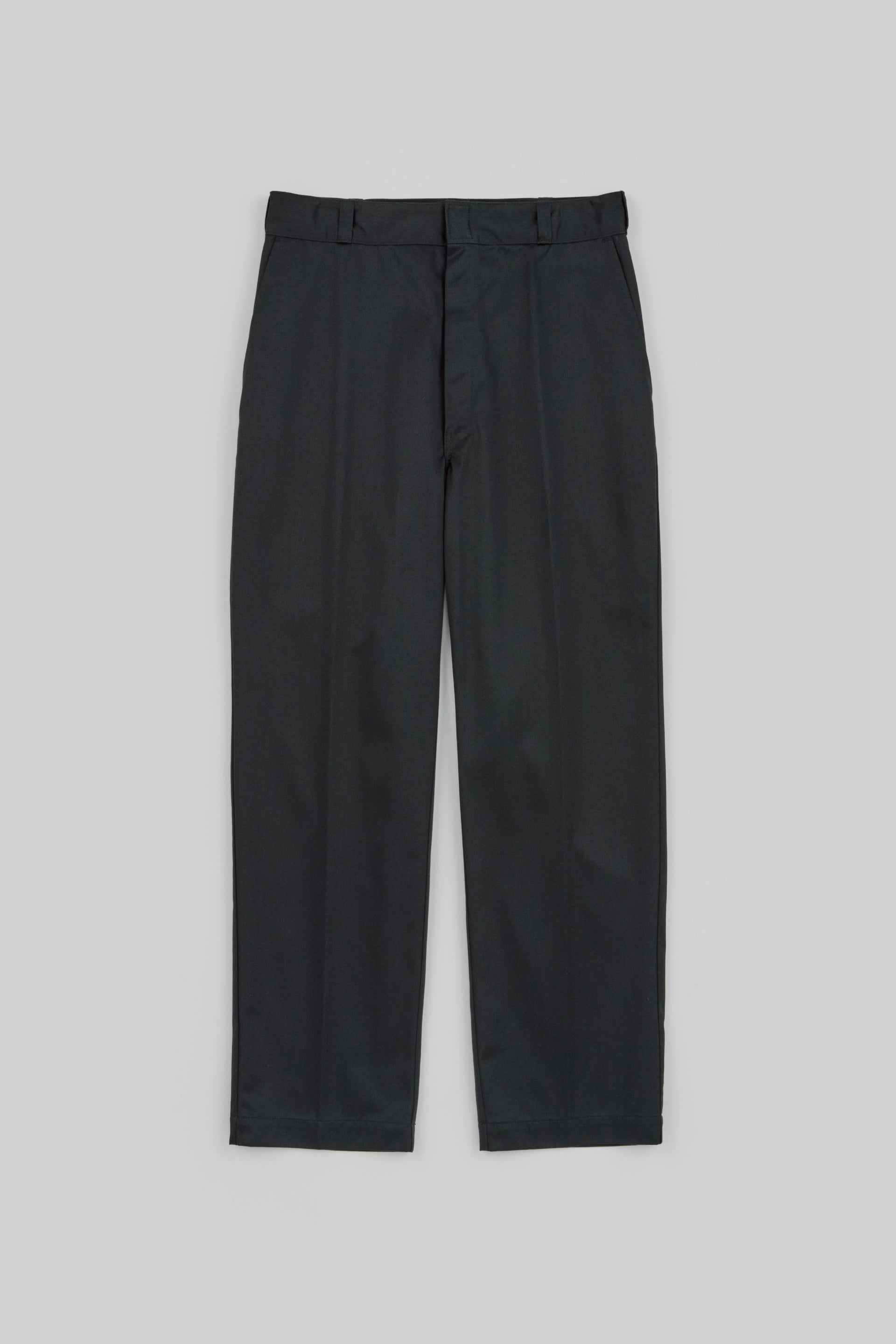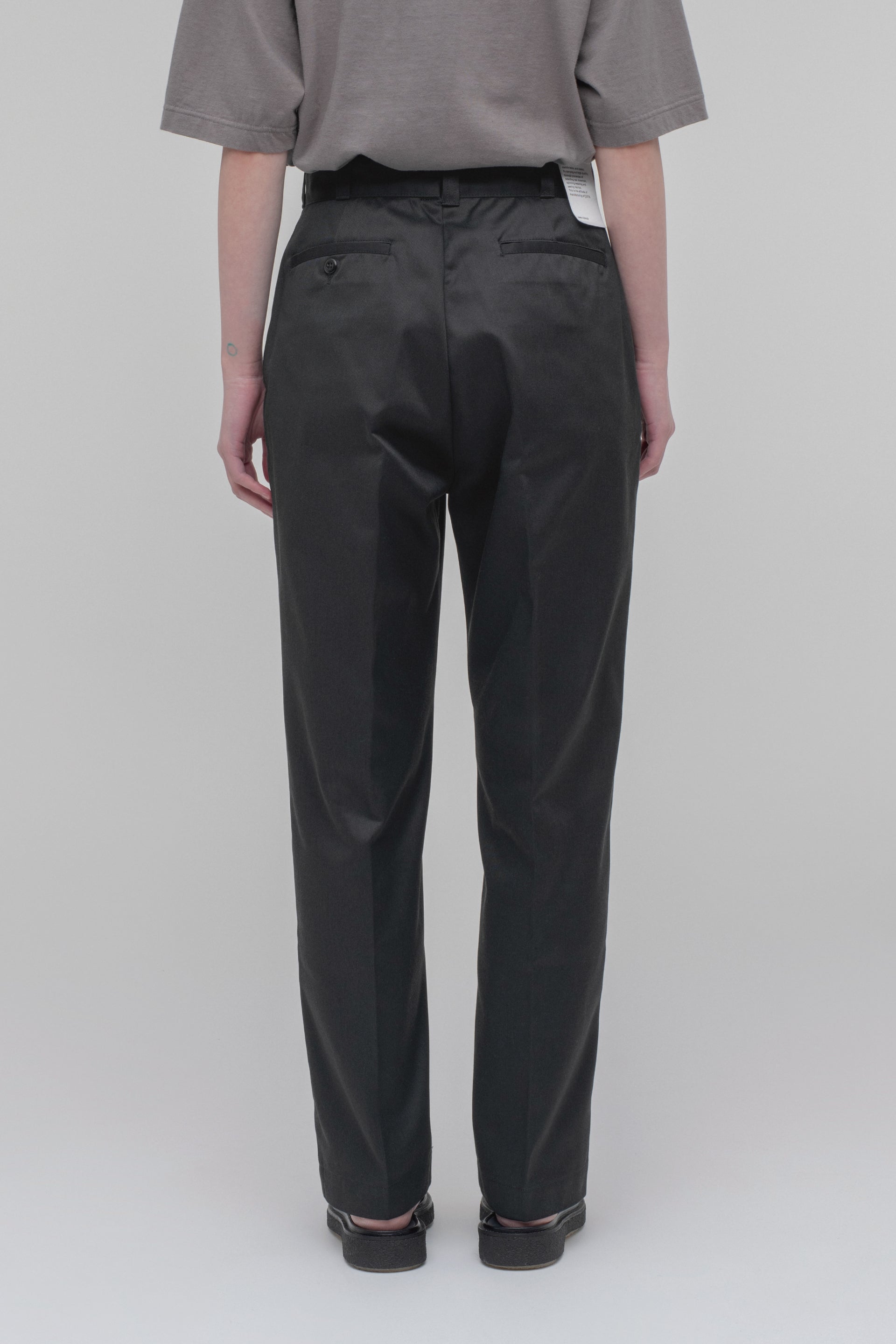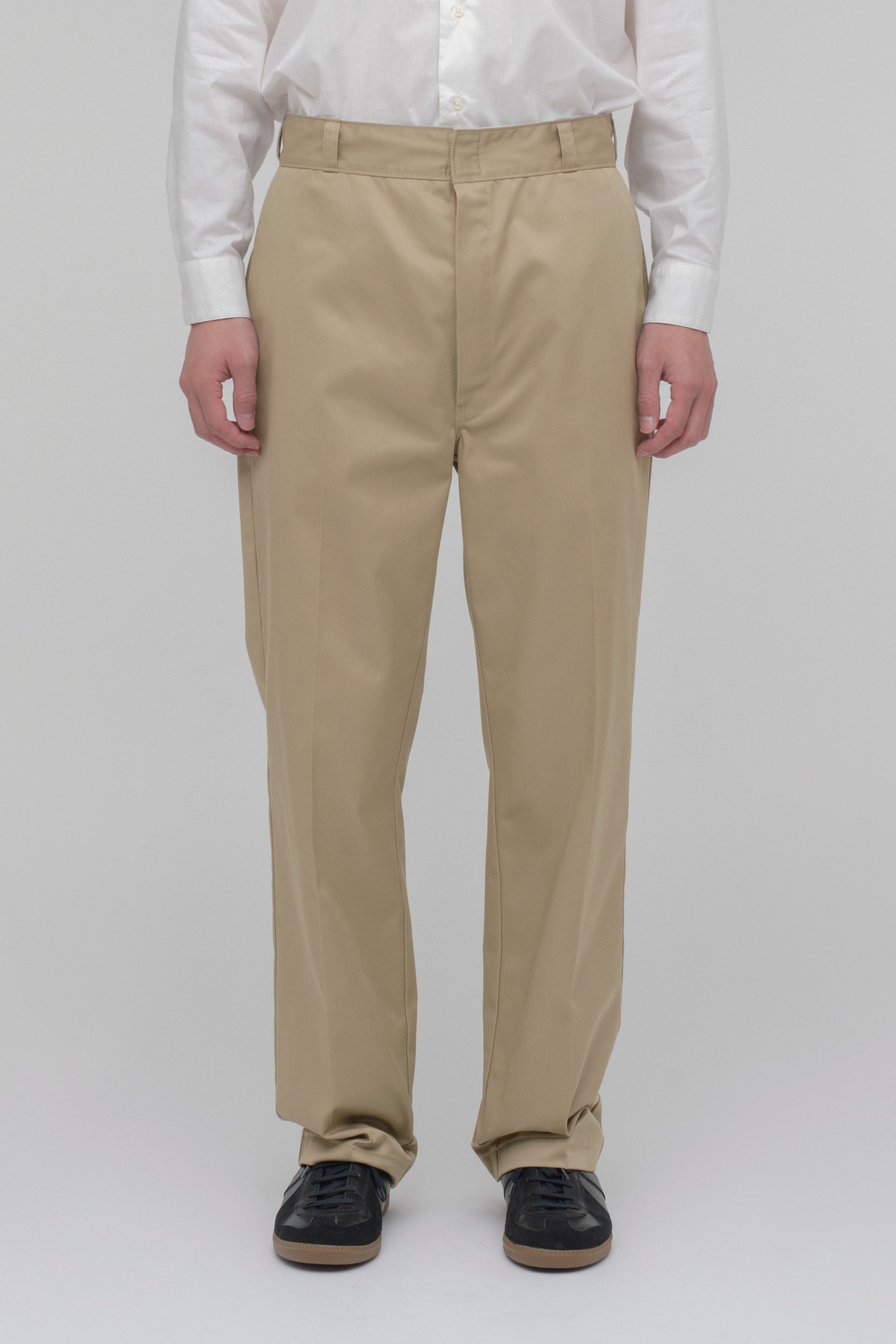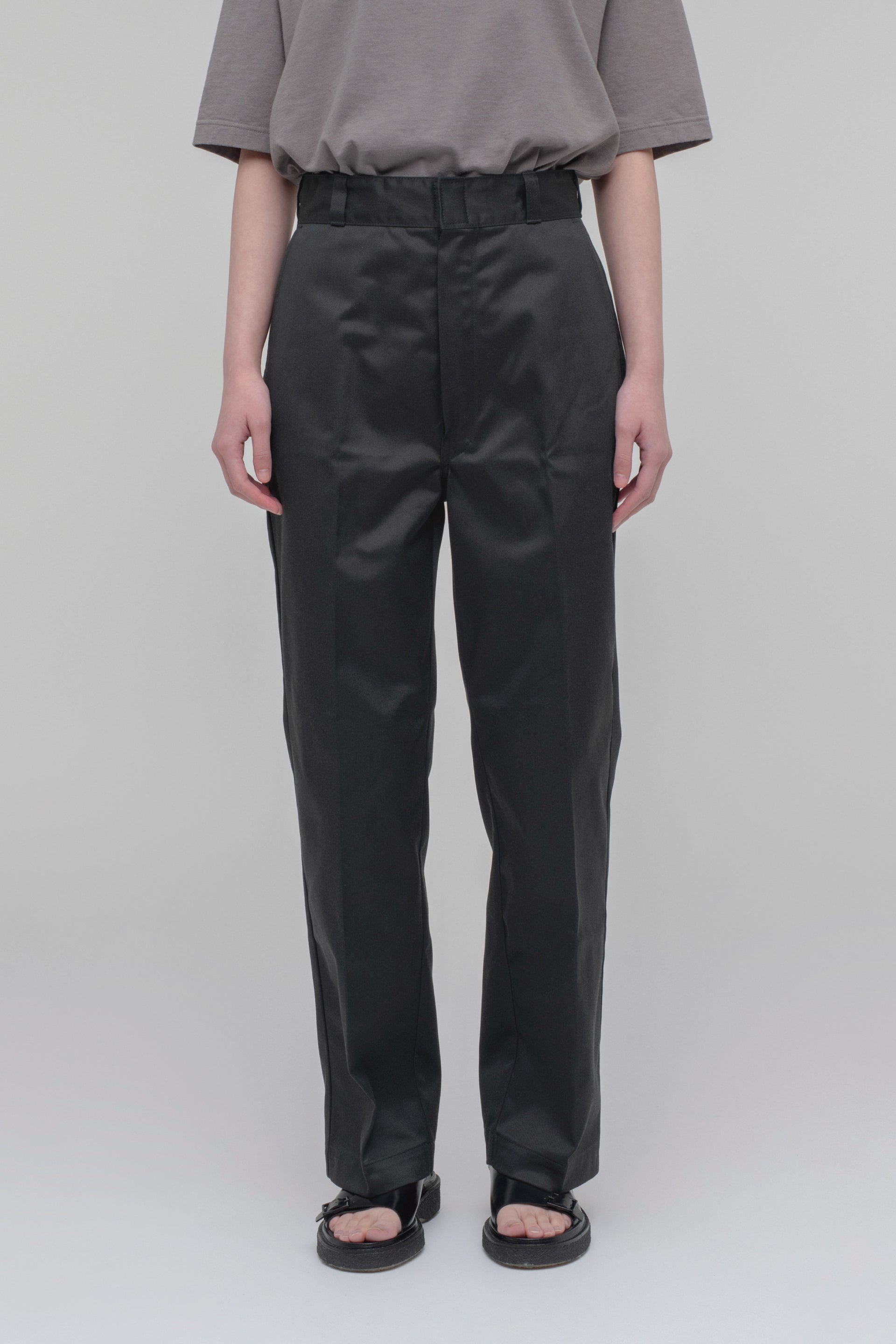 改めてパターンを引き直した、ワークパンツのリニューアルモデル。前モデルよりもややゆったりとしたワイドテーパードシルエットに生まれ変わりました。生地はスビンコットンとリサイクルポリエステル、それぞれ50%ずつをミックスしたオリジナルのT/Cツイル。スビンコットンらしい上品な光沢となめらかな肌触りに加え、ポリエステルならではのハリ感があり、シワになりにくく、センタープレスをキープしやすいのが特徴。カラーはベージュとブラックのほか、チャコールグレーが新たにラインナップ。